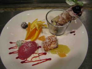 揚げた生地の中に、リコッタチーズ・サワーチェリーなどを詰め込んだ渾身の一皿。